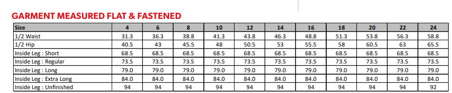 Half hem width at size 12R = 19.5cm